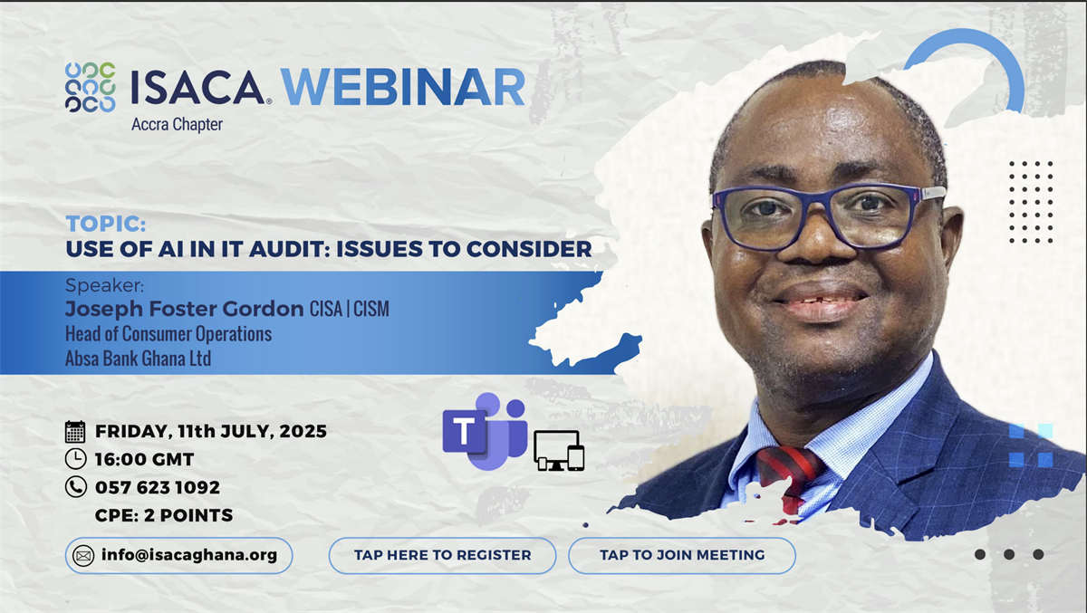You are kindly invited to participate in the 6th ISACA Accra Webinar on Friday, 12th September 2025.