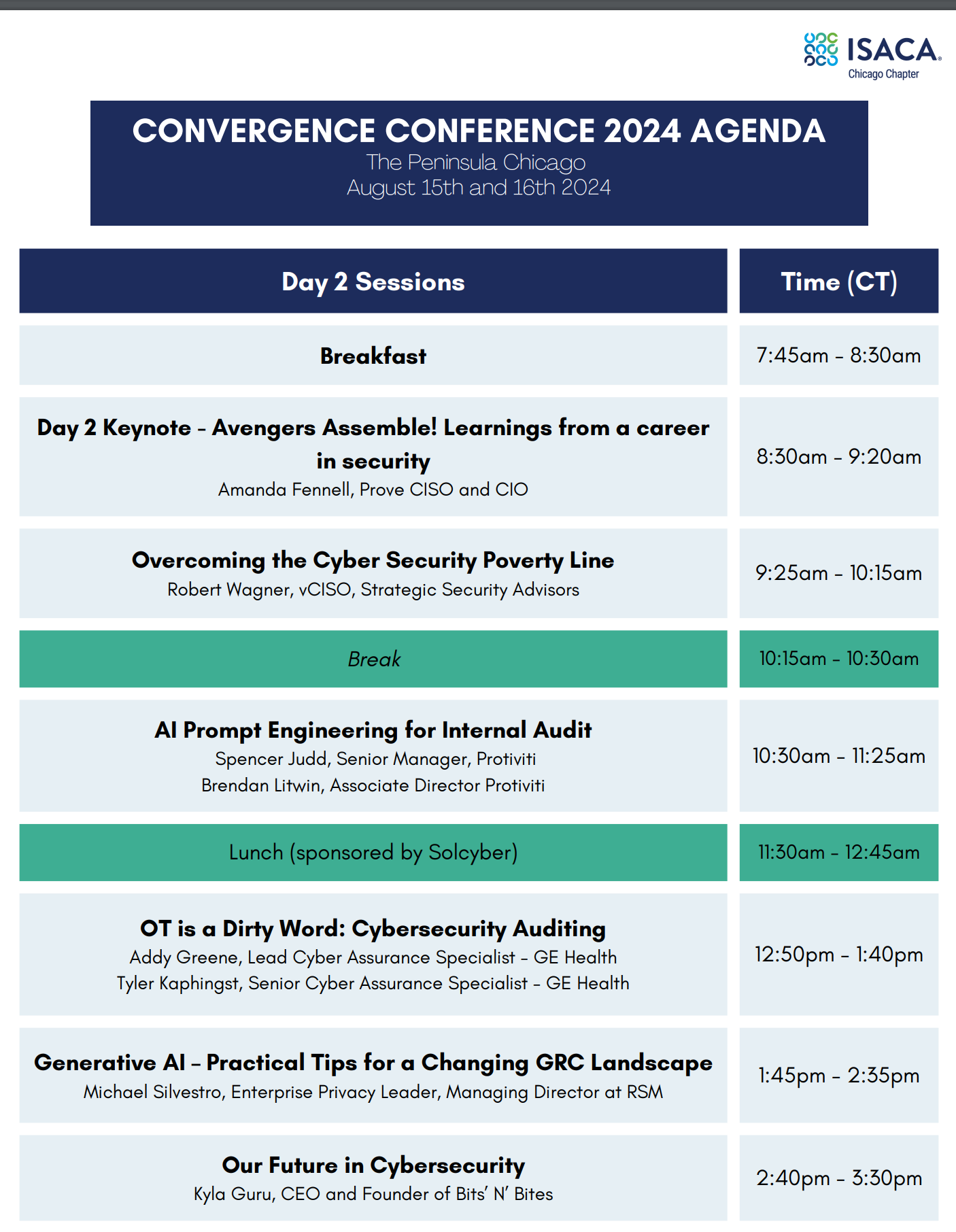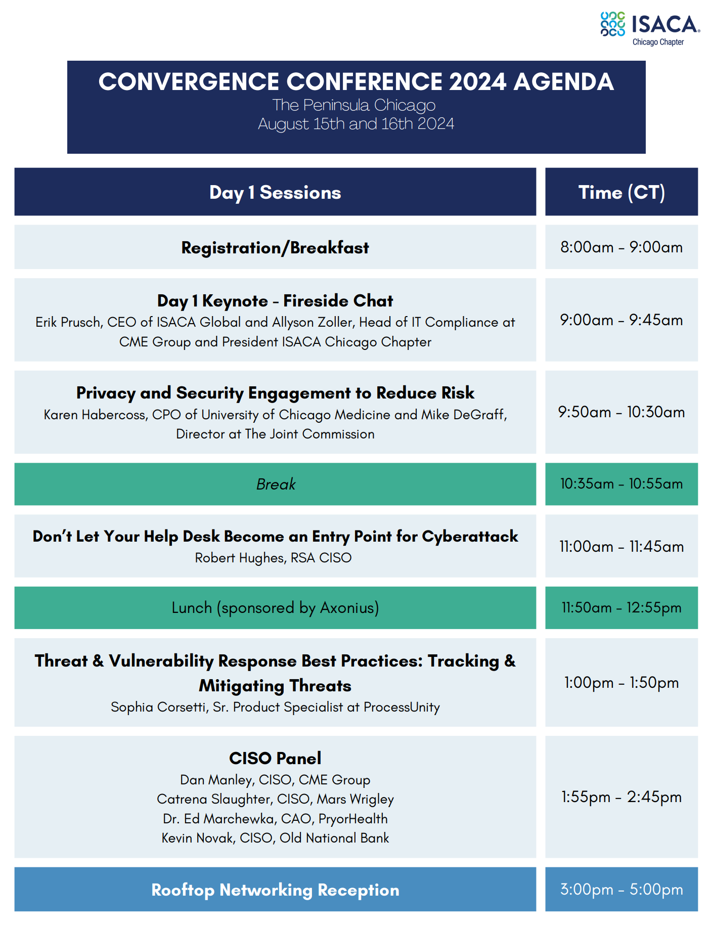 Engage. Join a community of experts, leaders, ISACA members, and your fellow professionals at the ISACA Chicago Chapter annual conference event. This is your opportunity to connect with other professionals to expand your understanding of the trends shaping technology and risk.