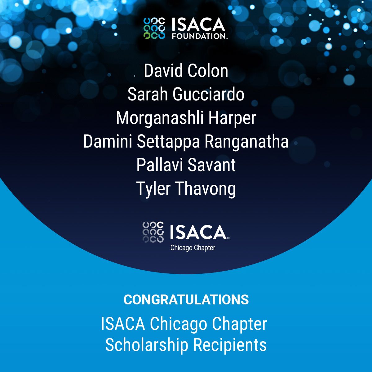 A huge thank you to the ISACA Foundation for partnering with us in this important initiative. Please join us in congratulating all of our amazing scholarship recipients!