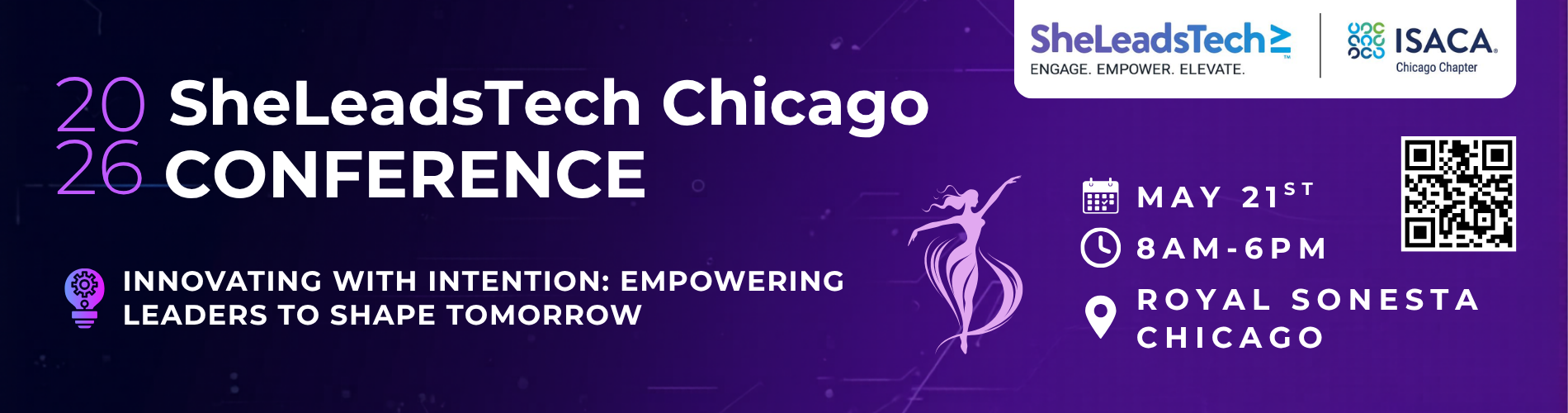 The ISACA Chicago Chapter warmly invites you to our impactful In-Person SheLeadsTech with... Expertise 2026 Conference on May 21th at the prestigious Royal Sonesta Chicago. Join us in the stunning Penthouse Ballroom on the 39th floor for dynamic sessions led by industry leaders.