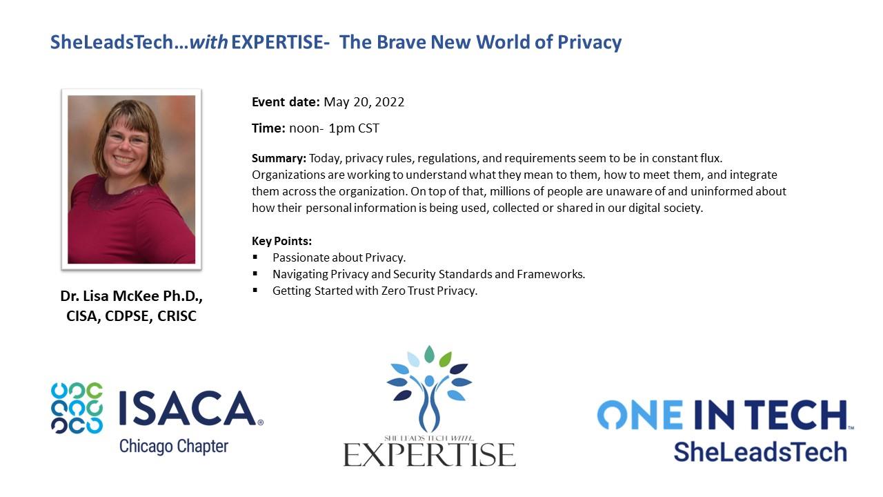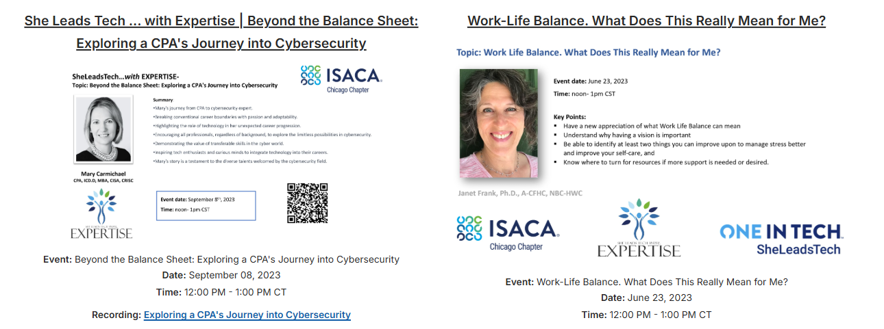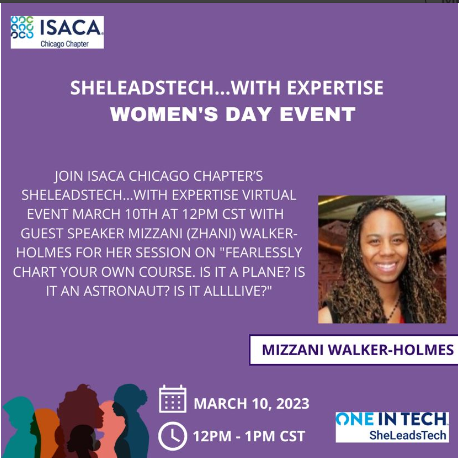 Event: Fearlessly chart your own course. Is it a plane? Is it an astronaut? Is it ALIVE?March 10, 2023, at 12:00 PM - 1:00 PM CTRecording Link: SheLeadsTech ISACA Chicago March 10, 2023 - YouTube