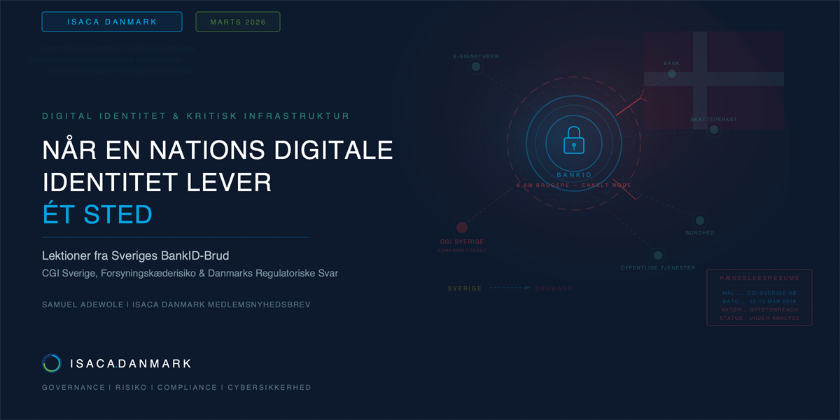 For Danmark kunne timingen ikke være mere betydningsfuld. Mens vi implementerer vores AI-forordnings tilsynsramme, udvider Datatilsynets overvågning til nye teknologier og forbereder os på EU Digital Identity Wallet, ankommer den svenske hændelse som både advarsel og lærer. Denne artikel undersøger, hvad der faktisk skete i CGI-bruddet, hvorfor Danmarks nye regulatoriske arkitektur gør identitetssystemsikkerhed mere presserende end nogensinde, og hvad ISACA-medlemmer skal forstå, mens vi navigerer krydspunktet mellem AI-governance, databeskyttelse og kritisk digital infrastruktur.