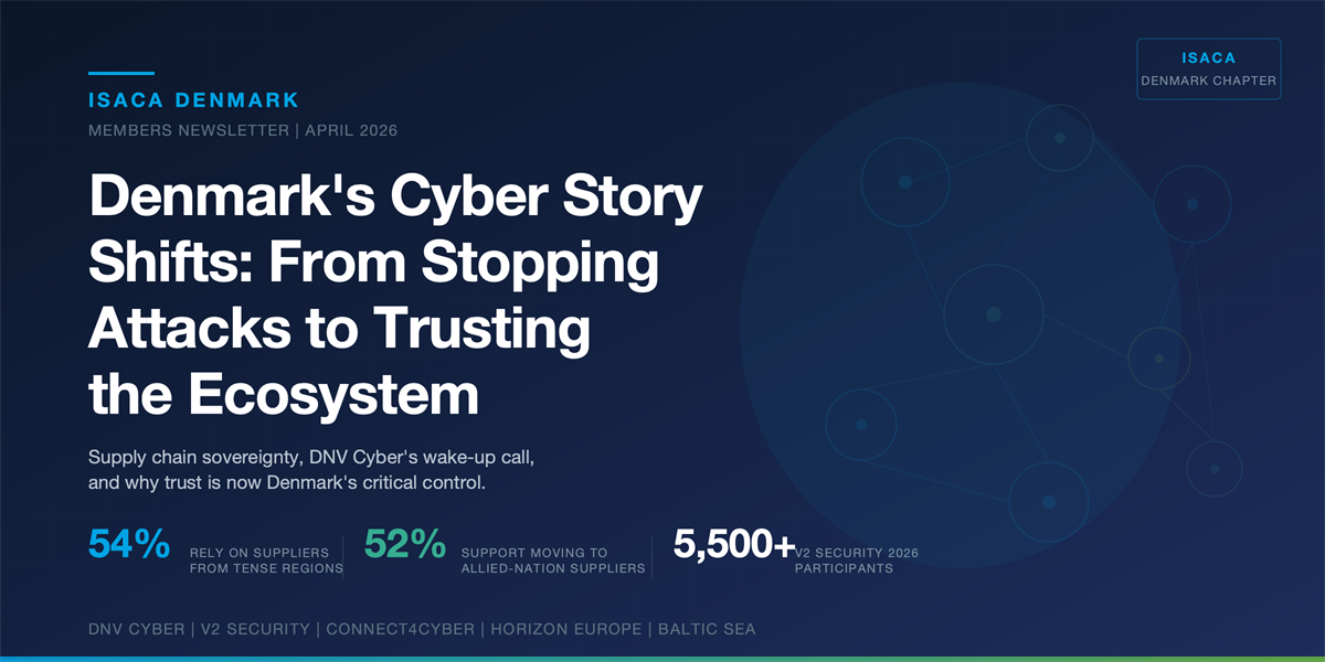 ISACA Denmark remains your platform for navigating these challenges collectively. Join our upcoming events, share your supply chain security experiences, and help shape Denmark's approach to trustworthy digital infrastructure. Together, we can ensure Denmark builds the resilient, well-governed, and strategically sound cybersecurity posture our digital society requires.