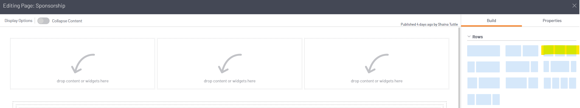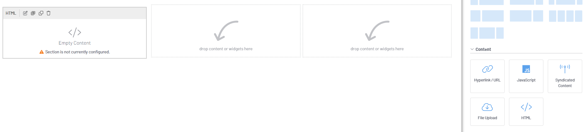 - Drag the “Hyperlink/URL” content item to the empty content row block.