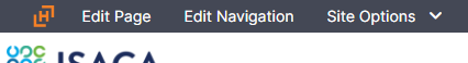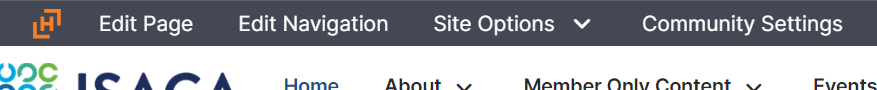 All web editing through the content management system (CMS) begins with the site admin toolbar. The toolbar appears across the top of every page a site admin has permission to edit on the chapter website. The options that should appear are Edit Page, Edit Navigation, Site Options, and Community Settings. The CMS is accessed through the "Edit Page" and “Edit Navigation” buttons.