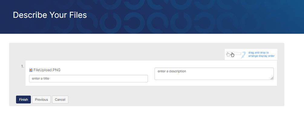 3. Click “Next” to add titles and descriptions for each of the files (if multiple files were uploaded) as shown in the image below.