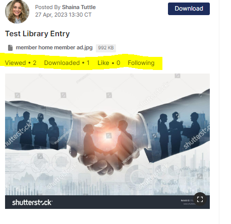 *NOTE: When viewing a library entry, you will see statistics on the number of views, shares, downloads, etc. on the page, as shown below.