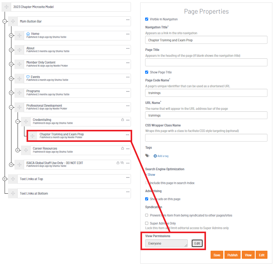 - Chapter News: As part of the template provided by ISACA Global, the Chapter News permissions are set to be viewable by members only. The chapter MAY update the view permissions for this page if desired.