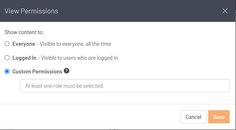 3. Set the permissions for the page accordingly. You can select for content to be shown to all site visitors ("Everyone") or set custom permissions for member only content ("Members"). Click "Save".