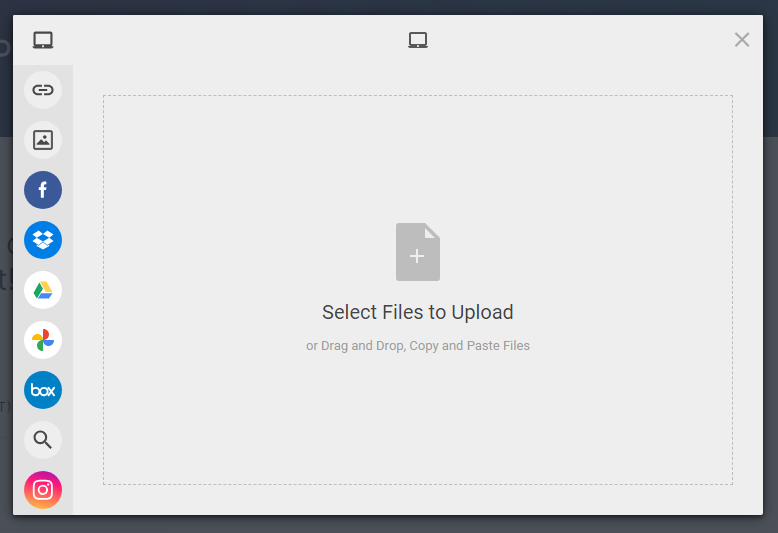 2.You can drag and drop files from your desktop into the box or select "My Device" to browse files that are on the computer you are using. Upload your files then select "Next".