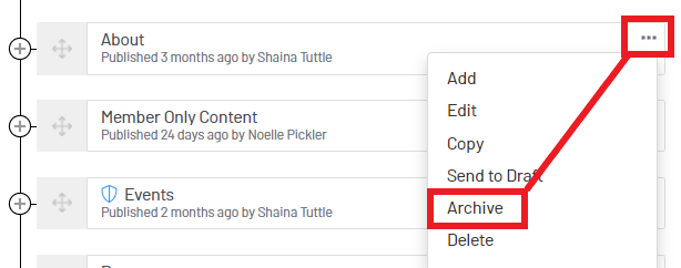 If you no longer need a page, but want to keep the content for your records, you can archive a page. This will remove it from the navigation, but site administrators will still be able to access the content within the CMS. (For example, this can be useful for pages related to annual events where you want to show the most recent event but not lose historical data that the site admin can reference.)