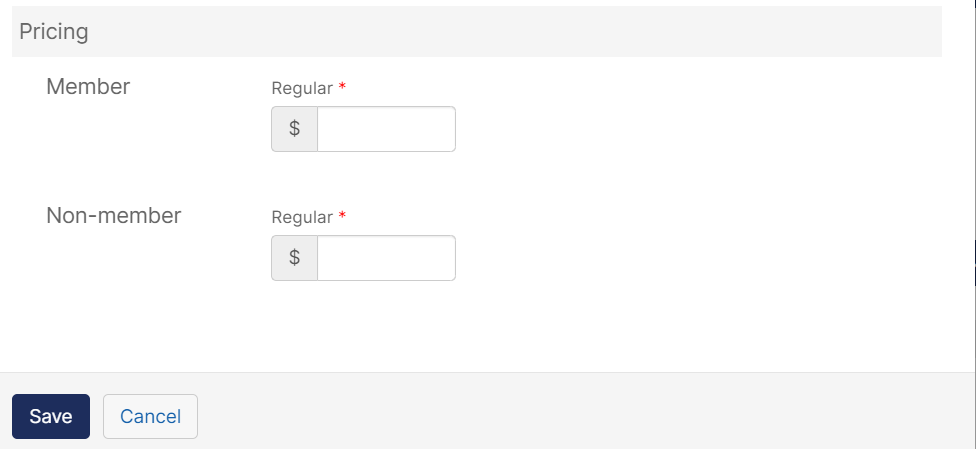 - Pricing – this is the only place you are able to edit the pricing details of an event after it has been saved on your site, whether active or on hold. It is advised not to make pricing changes after users begin registering.