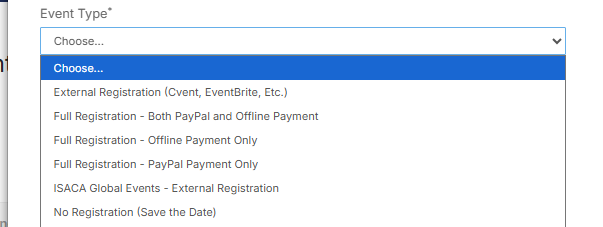 This event type should only be selected if you are wanting to promote an ISACA event on your chapter website.