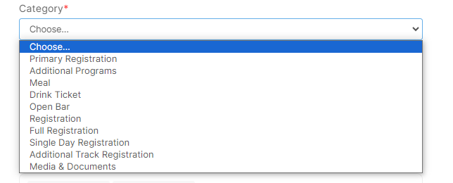 One Event Type must be chosen for each event you create. The Event Type you choose will populate different event options and functionalities. The Event Type applied to an event is not visible to your site users.