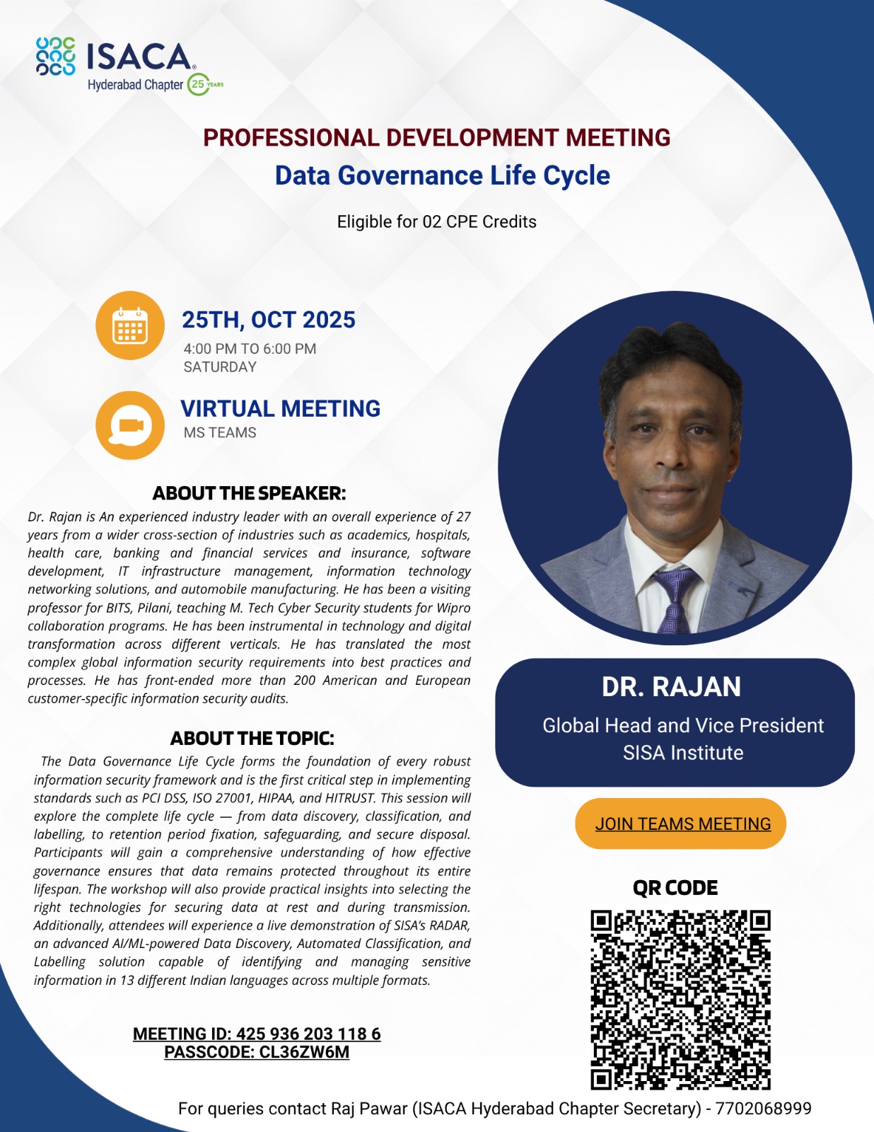 ISACA Hyderabad Chapter invites you to virtual  PDM, through Teams Meeting.