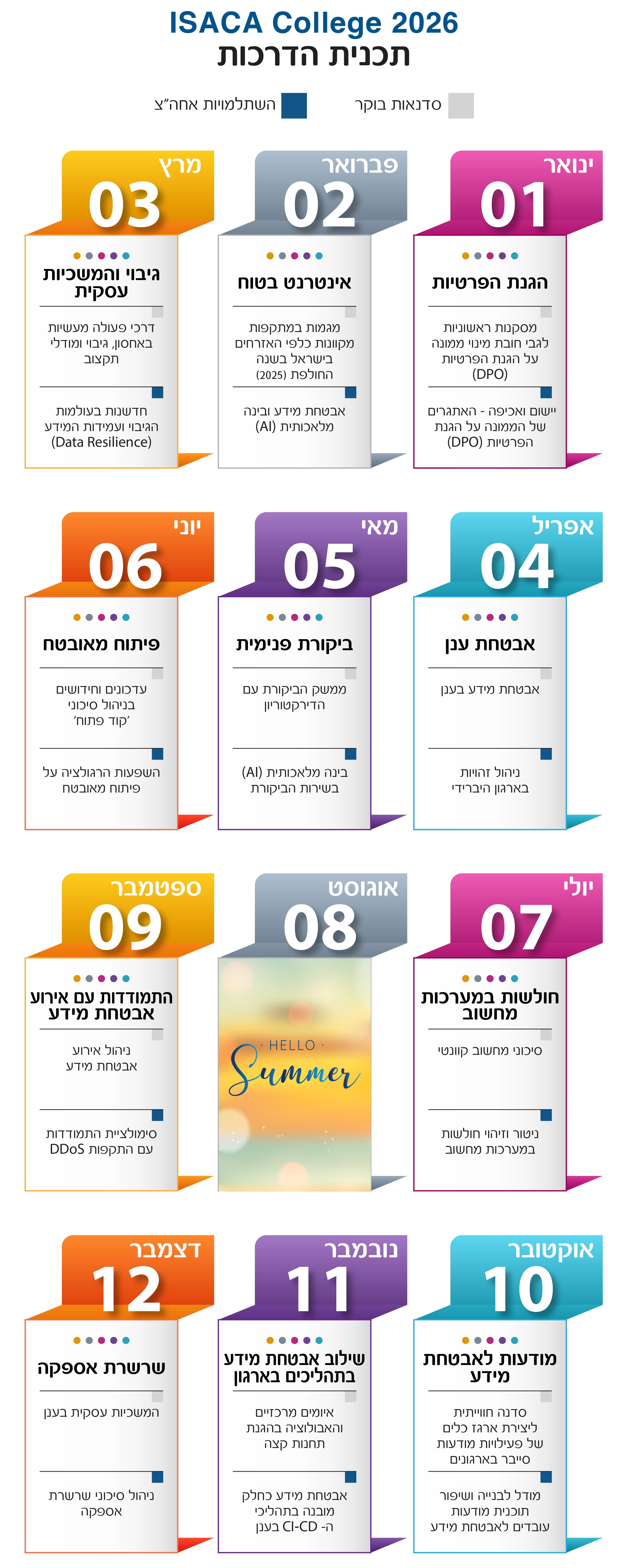 לפרטים נוספים אודות התוכנית, לרבות מועדים מדויקים ומיקום, ניתן לפנות למזכירות ISACA ישראל: