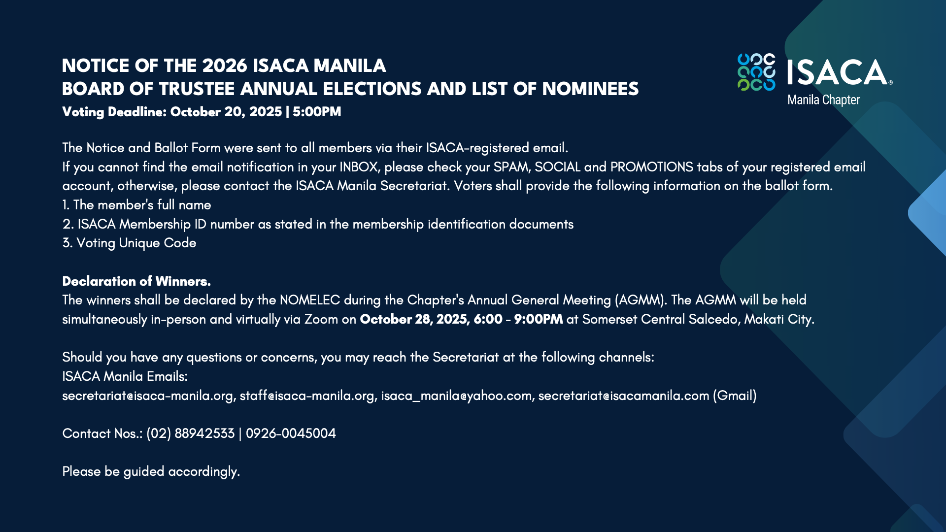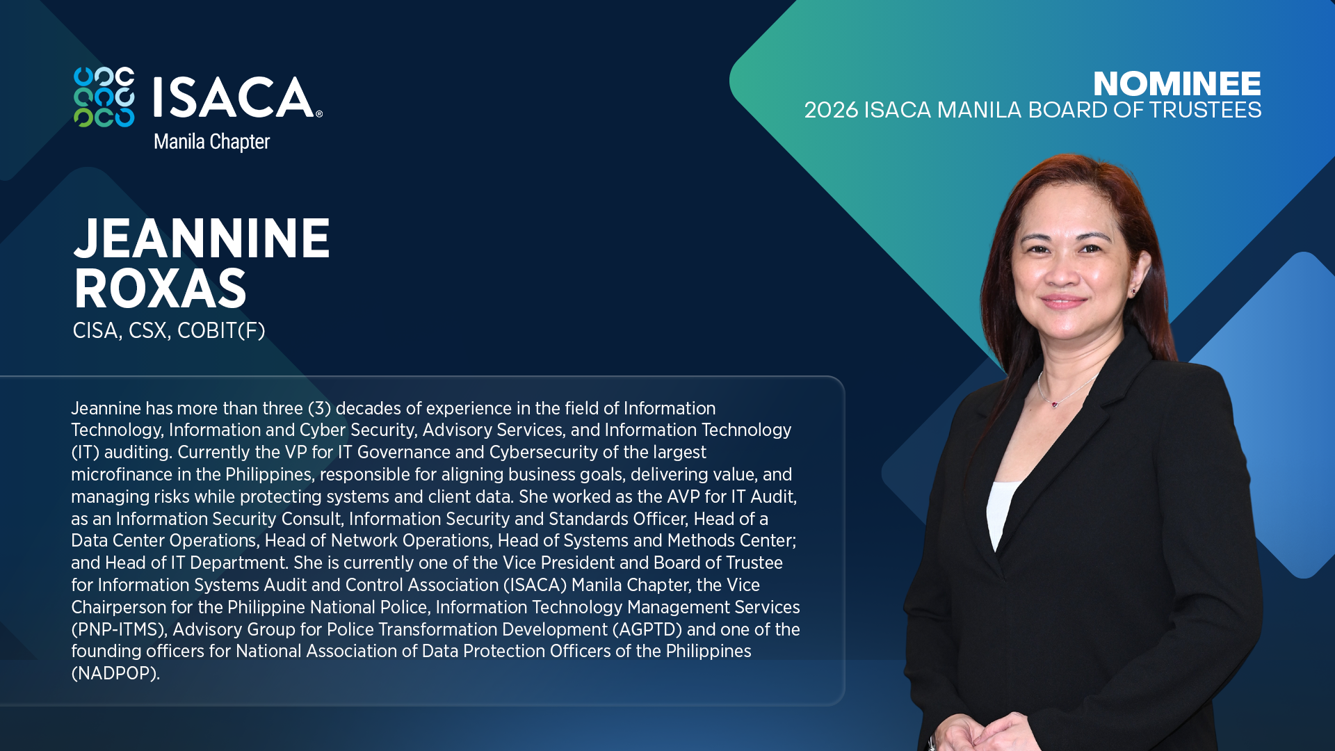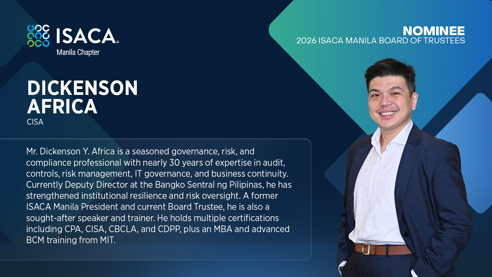 Nominees for the 2026 ISACA Manila Board of Trustees