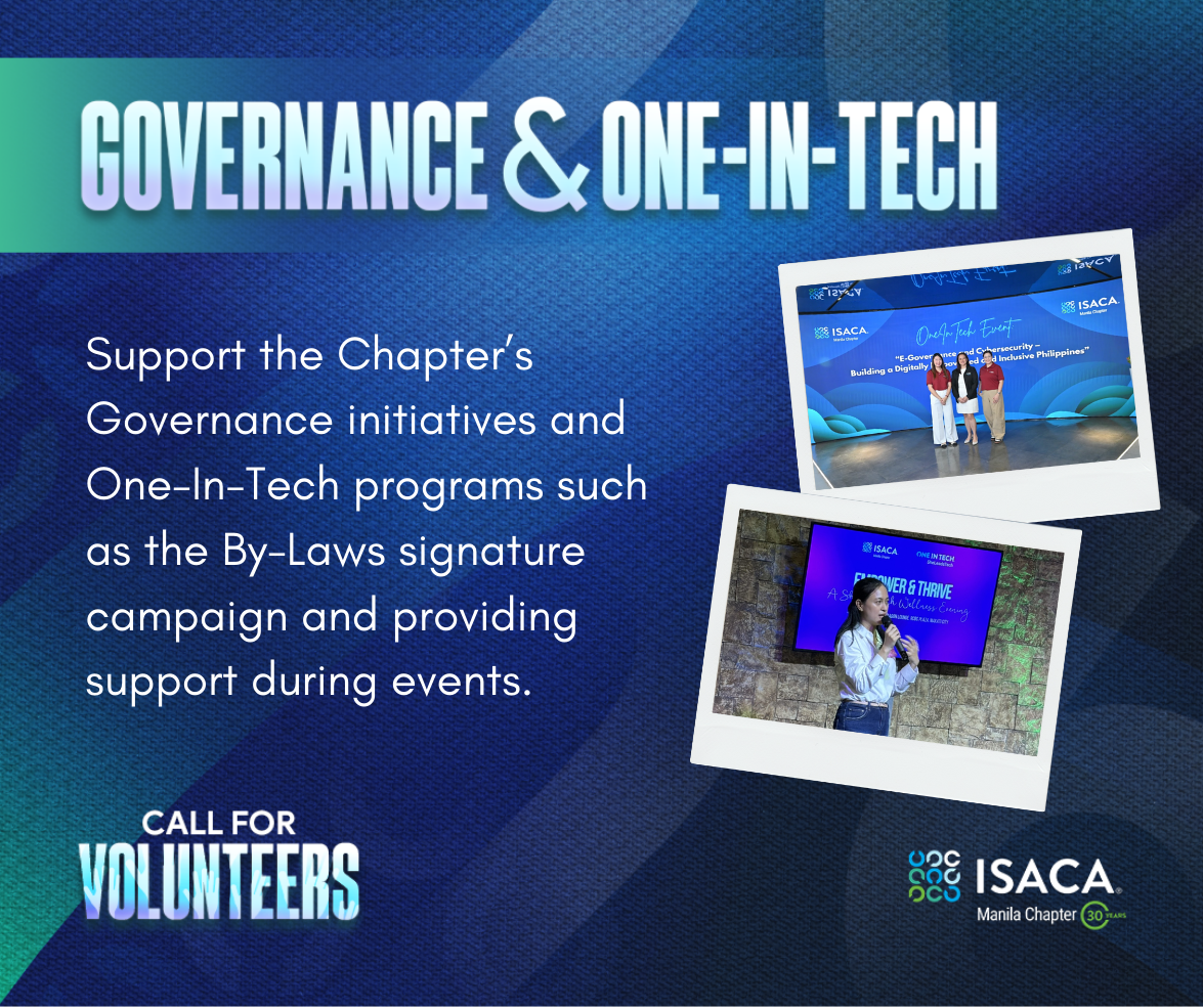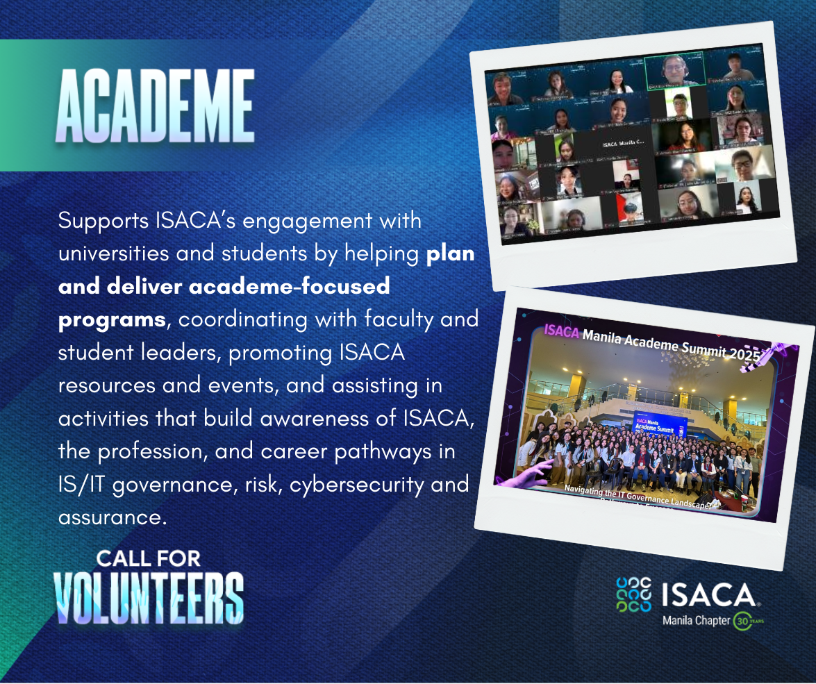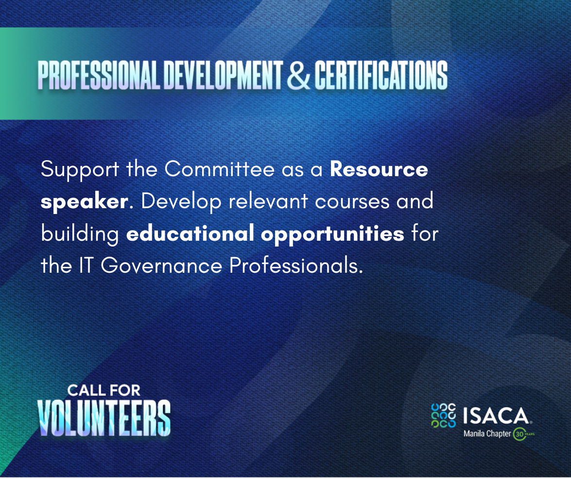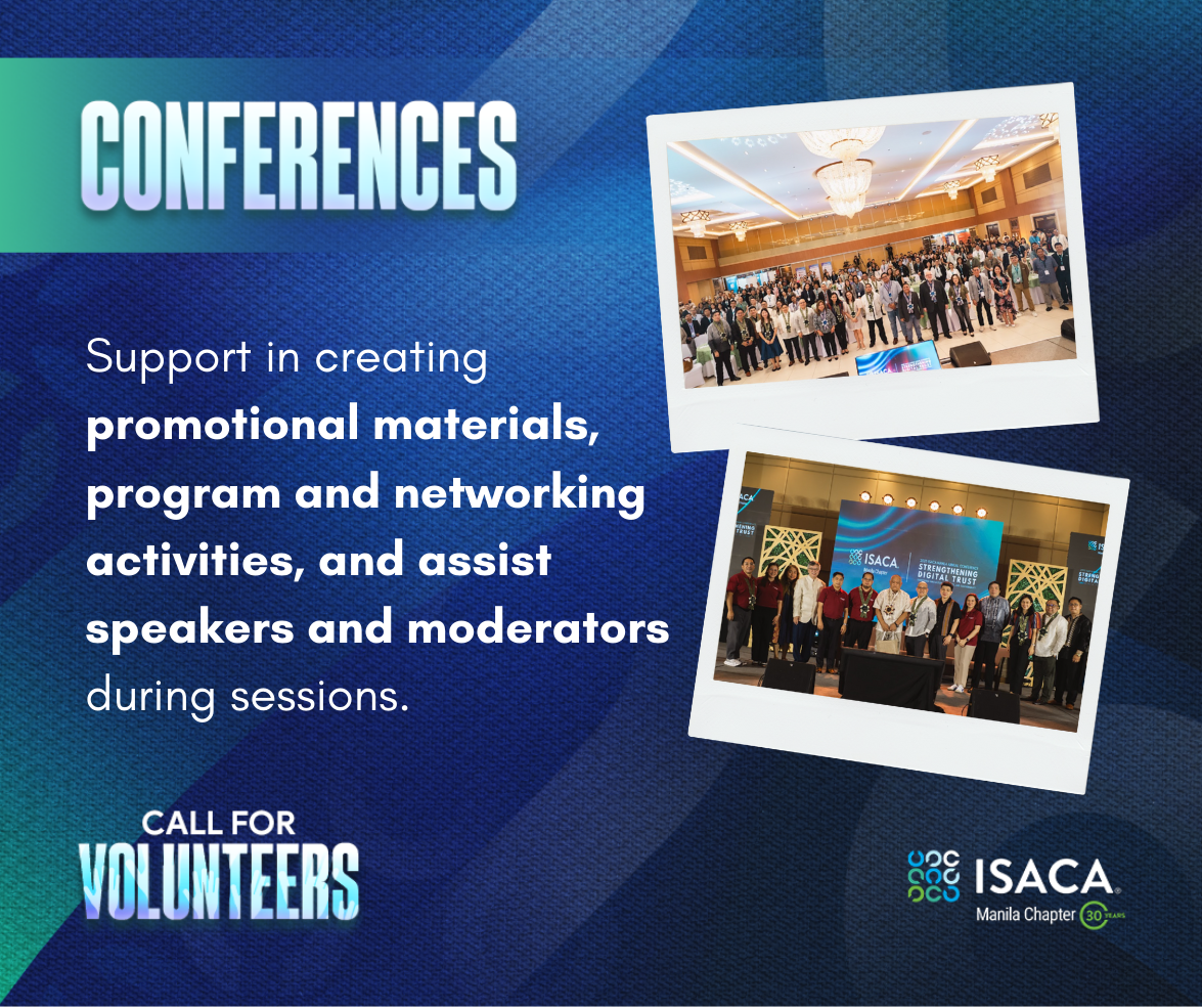 ISACA Manila Chapter is inviting passionate, driven, and service-oriented members to join our pool of Chapter Volunteers!