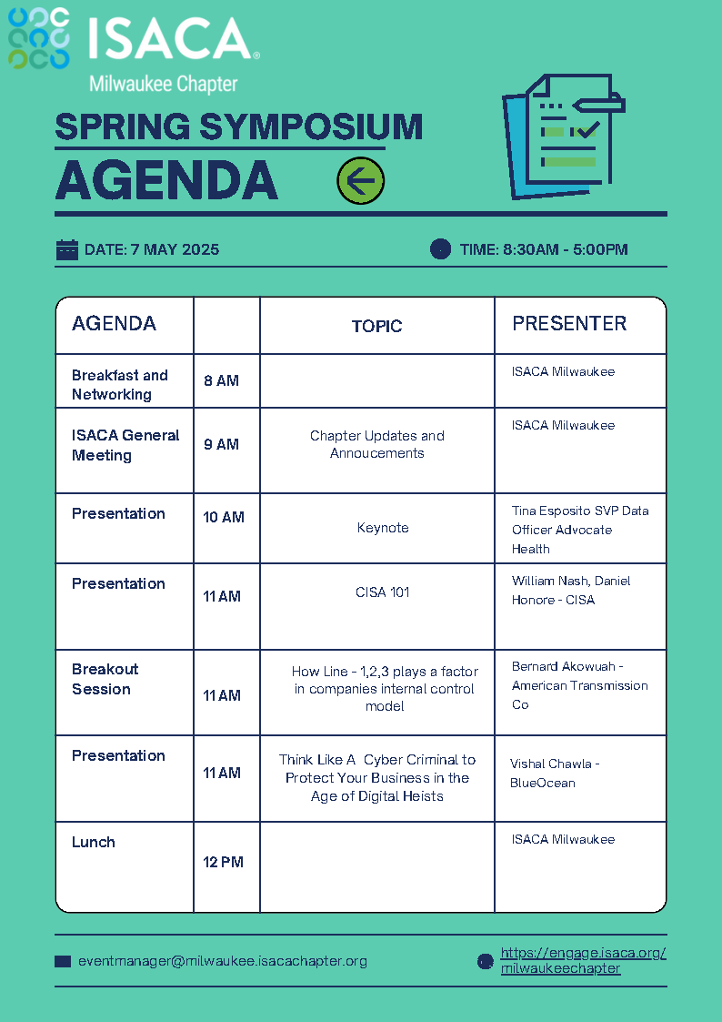 π Join Us for the ISACA Milwaukee Spring Symposium! ππ Date: May 7thπ Location: Potawatomi Bingo Hall