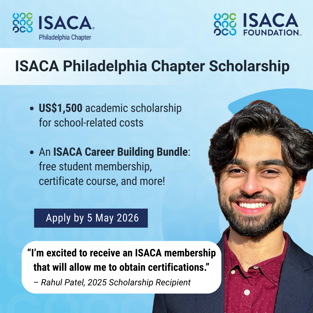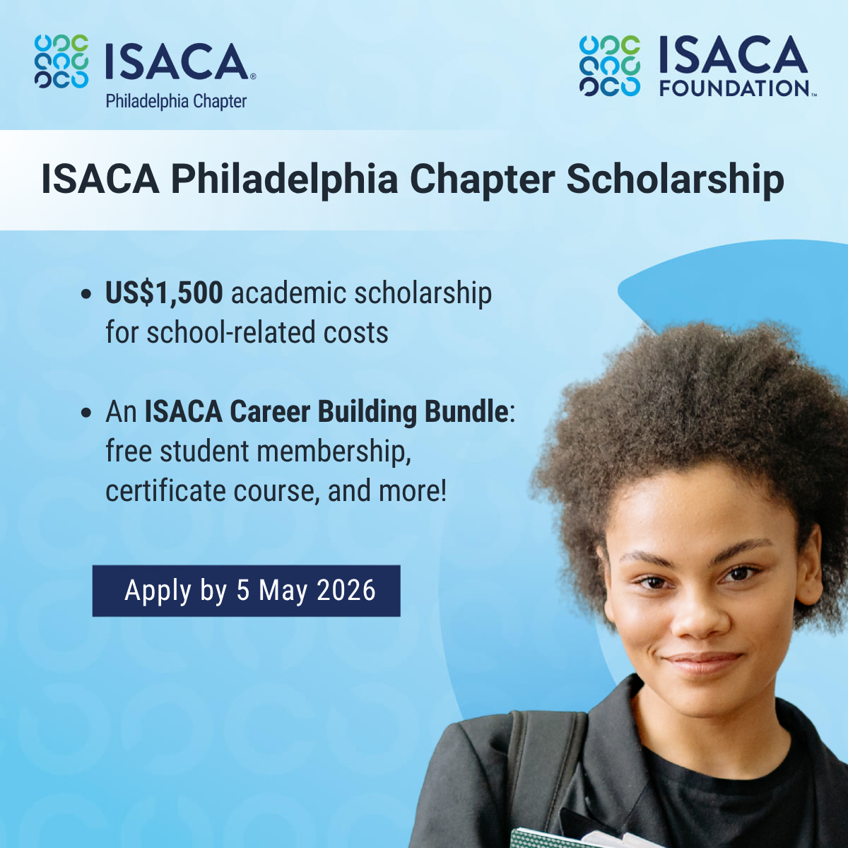 The ISACA Philadelphia Chapter is proudly sponsoring five academic scholarships in partnership with the ISACA Foundation in 2026!