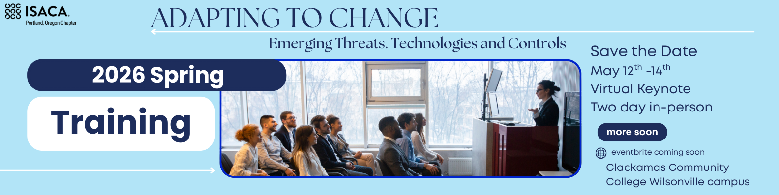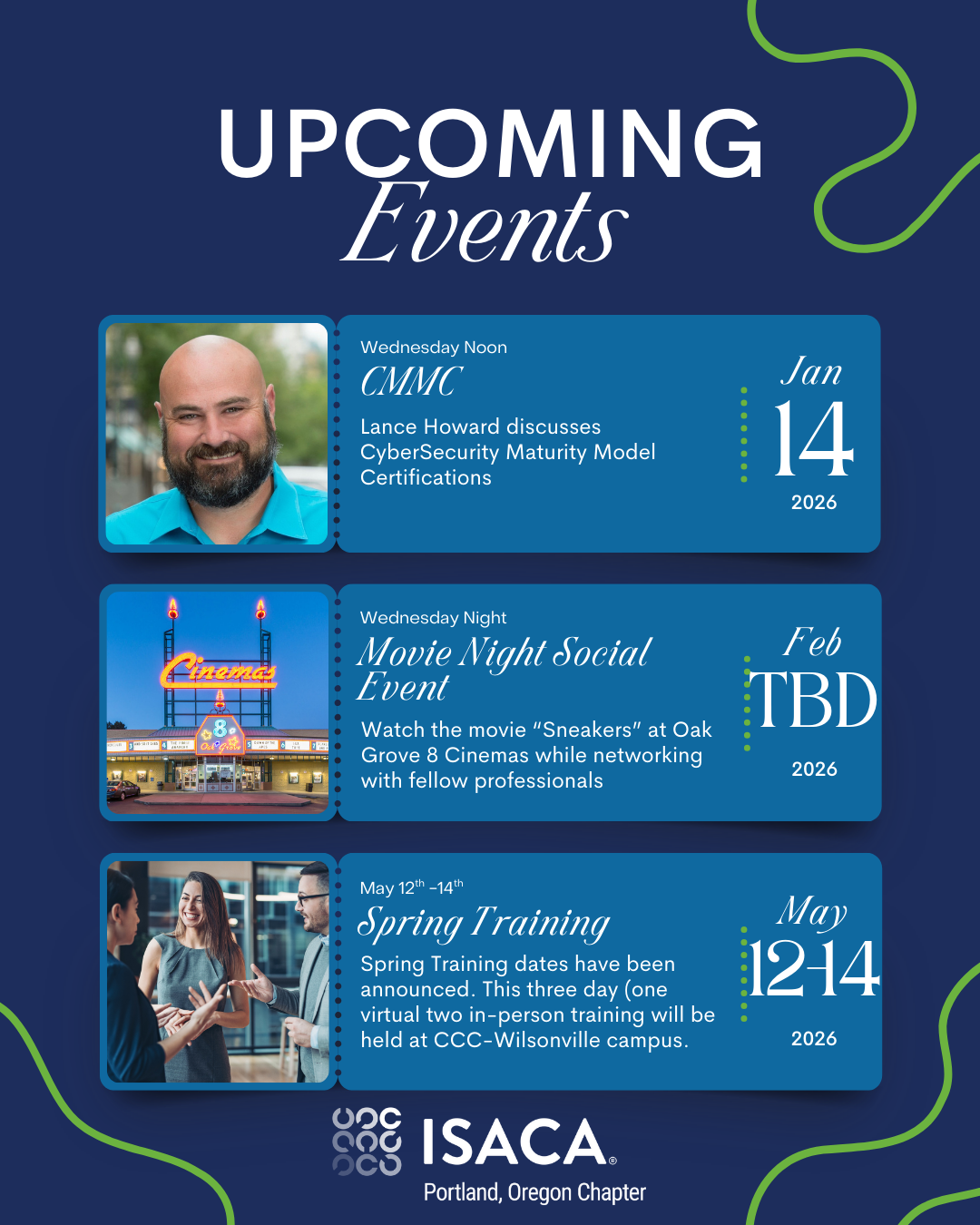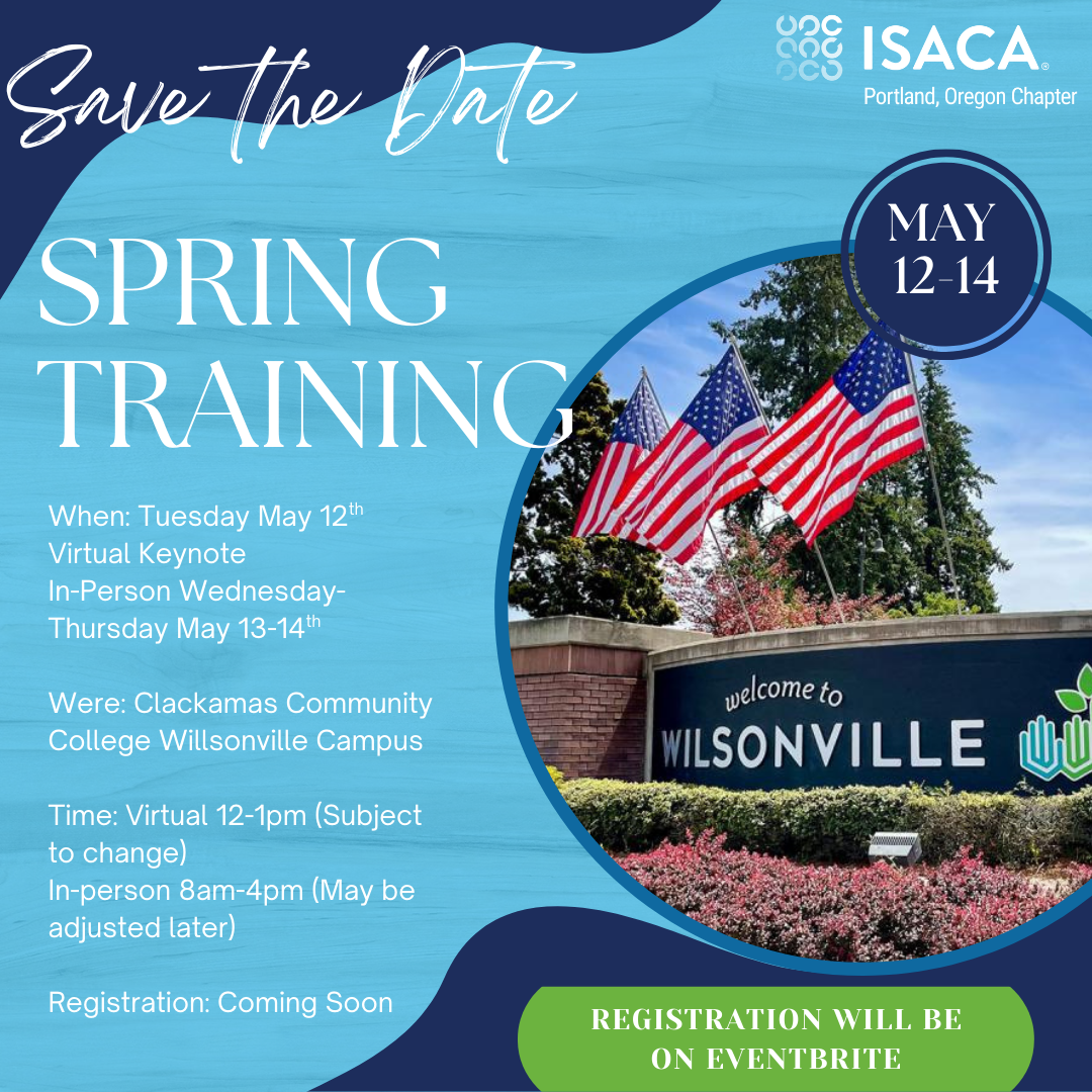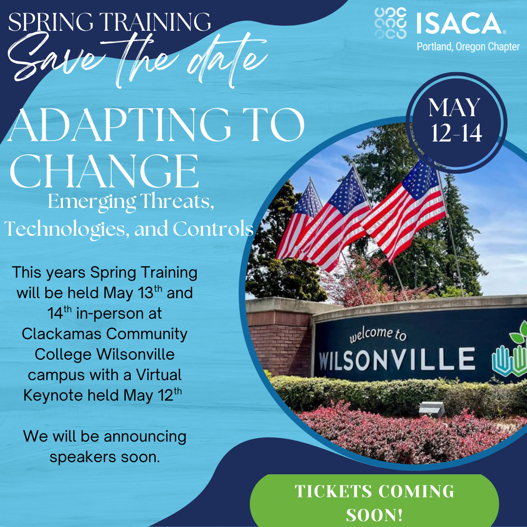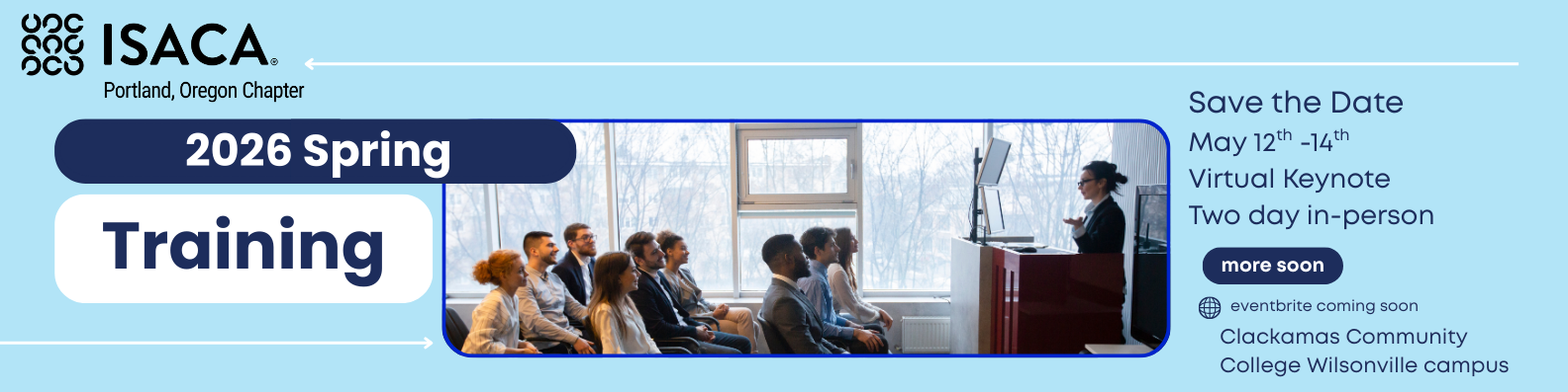 The ISACA Portland Oregon chapter was formed in 1980 and has over 500 members. We work to support and connect local digital trust professionals who are eager to network and advance their careers. We look forward to connecting with you! Visit the "About" page to learn more about our chapter and contact chapter leaders.