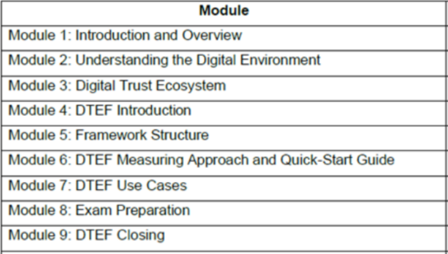 The DTEF Foundation Certificate is designed to deepen your comprehension of the DTEF Framework and validate your understanding of the concepts, principles, methodologies and best practices essential for implementing, improving and sustaining a digitally trustworthy organization.