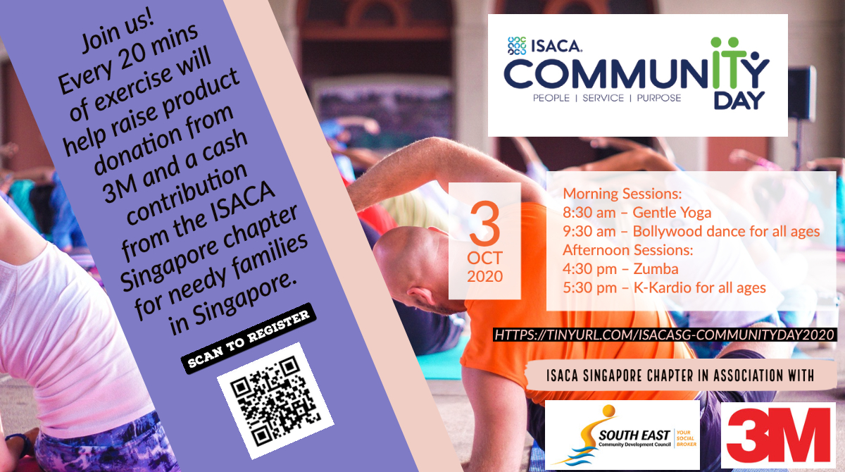 Under the 3M Move, 3M Singapore will donate a piece of its product for every 20 minutes each participant exercise. ISACA Singapore will be arranging four sessions of virtual exercise and donate $20 per session completed by each participant capped at $5,000. You can do your bit to help by participating along with your friends and family members.