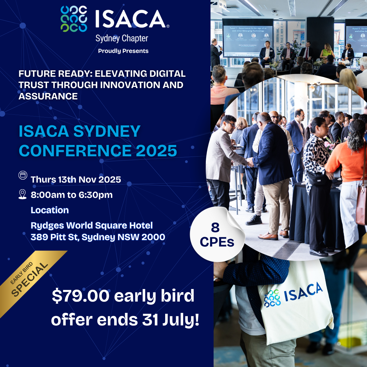 You're invited to "Future Ready: Elevating Digital Trust through Innovation and Assurance," an unmissable event hosted by ISACA Sydney. This conference brings together thought leaders and industry experts to explore the evolving landscape of digital trust (8 CPEs).