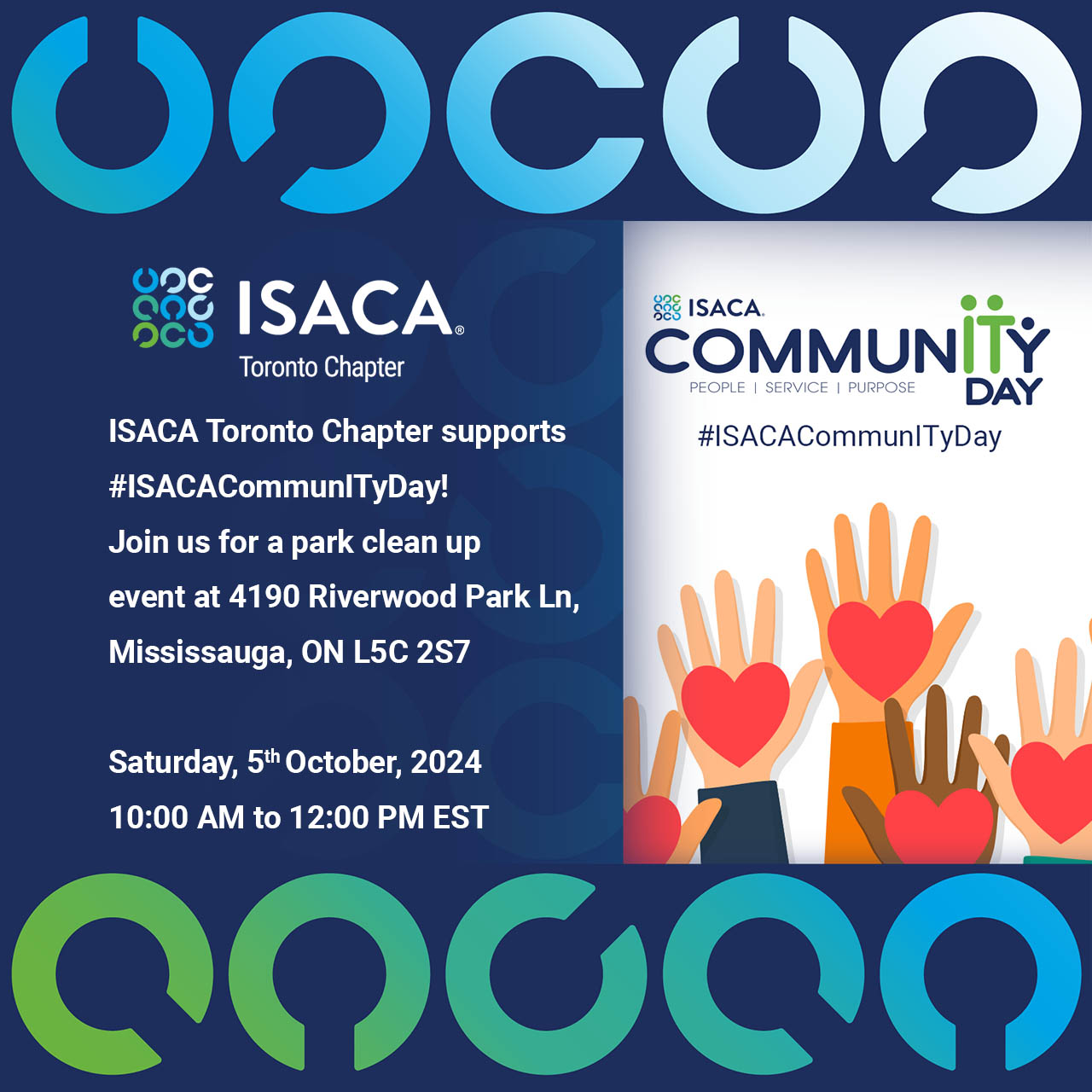ISACA Toronto will participate in the sixth annual worldwide day of volunteerism, CommunITy Day, on Saturday, October 5th, 2024. Using a live social media feed and #ISACACommunITyDay, ISACA members, staff, and other engaged community members worldwide will track local service projects making a difference in their communities within this 24-hour period. ISACA Toronto is planning the following event: